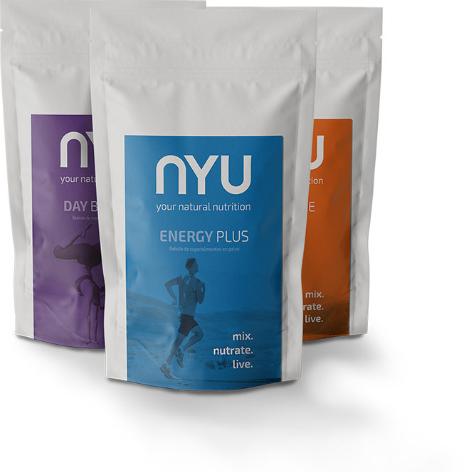 NYU es el complemento ideal, rico en nutrientes de fácil asimilación para nuestro organismo. Todo esto lo hace de forma práctica, combinando ingredientes con alta biodisponibilidad y respetando al máximo la sostenibilidad. Nos adaptamos directamente a tus necesidades, cumpliendo con una variedad de objetivos: para la actividad física y el deporte, mejorar el bienestar general y como apoyo extra a una condición especifica.